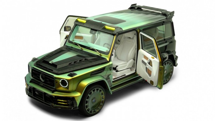 Впрочем, проект пока существует только на бумаге. Ателье Mansory, известное своими неоднозначными выходками (например, см. тут, тут и тут), нарисовало спортивный внедорожник Gronos Coupe EVO C, созданный методом конверсии на базе Mercedes-Benz G-Class W463-II. То есть за основу взяли серийный Geländewagen, сдвинули ему средние стойки, навесили две широченные, как в гараже, заднепетельные дверцы. прилепили оригинальный капот, обвес и крылья из модного нынче углепластика. Но весь этот шик только для передних мест – чтобы попасть на задние, придется сложить спинку переднего кресла (прямо, как в «Запорожце»).