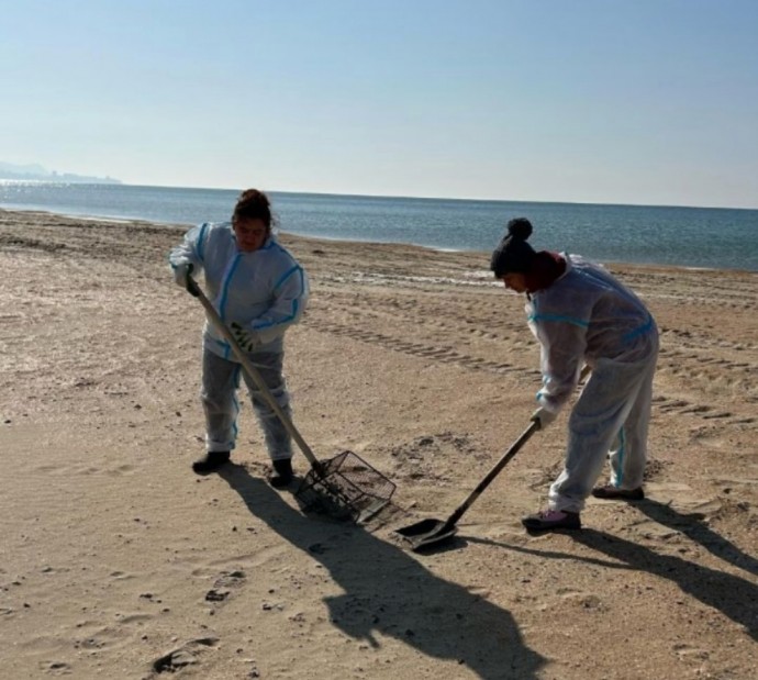 Оксана Васильевна Масленникова и Ольга Яковлевна Каюкова в составе волонтёрской группы Мостовского района отправились на очистку побережья в Анапе.