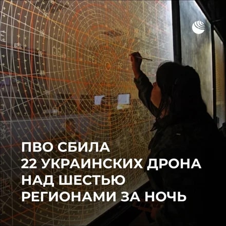 Над российскими регионами за ночь сбили 22 украинских беспилотников