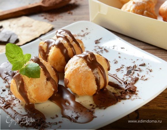 Приготовление: 1. Масло и воду довести в кастрюле до кипения. Постепенно добавить муку, подсыпая понемногу и постоянно перемешивая. Снять с огня. Немного остудить. 2. Вбить яйца по одному, каждый раз тщательно перемешивая тесто (можно миксером). 3. Разогреть духовку до 175°C. На смазанный маслом противень выкладывать чайной ложкой шарики (или кондитерским шприцом полоски — тогда будут эклеры). Поместив противень в духовку, ни в коем случае не беспокоить заварные пирожные, чтобы дать им возможность подняться! Выпекать до золотистого цвета. 4. Остывшие пирожные заполнить кремом.
