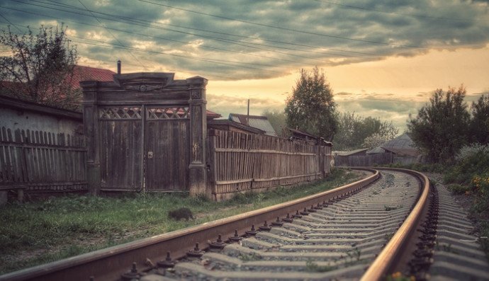 Недавно забрёл на очень колоритную улицу, где железная дорога идёт почти вплотную к жилым домам. И наткнулся на не менее колоритные ворота. Решил запечатлеть все это дело, больно понравилось. Кот-призрак на переднем плане сдриснул в момент съёмки, поэтому и получился таким.